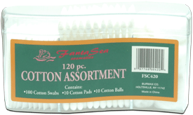 Contains, 10 cotton pads, 10 cotton balls and 100 double sided cotton swabs
