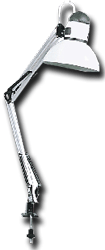 of table with included clamp. Uses incandescent light bulb up to 75 watts